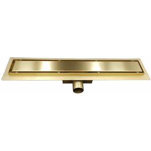 Linear drains are practical and functional. Thanks to the wide range of sizes, it is easy to choose the right one for the cabin. The possibility of choosing a cover (gold or a place for inserting an additional tile) of the drain will allow you to adjust the appearance of the drainage to your needs. The high resistance of the materials used ensures long and comfortable use. Specifications: - Length: 80cm; - Entirely made of stainless steel (dirt trap and grille made of high quality plastic); - Finishing colour: gold; - Shallow installation depth - the drain is suitable for bathrooms in apartments and houses; - Adjustment of cover with a pattern or a grate for mounting under a floor tile and make it almost invisible; - The body and additional protecting grille are easy to disassemble and clean (convenient cleaning from the top); - Simple installation - legs facilitating leveling the drain (height adjustment allows for stable installation up to a depth of up to 80mm); - The appropriate