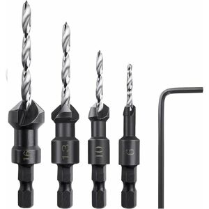 Material - High Speed Steels; Size - 6mm(1/4''), 8mm(5/16''), 9mm(3/8''), 12mm(1/2''), 16mm(5/8''), 19mm(3/4'') Application - Great for Sinking 90 Degree Holes into Wood and Soft Metals Countersunk Screws and Fixings A Chatter-co.ukee,five-flute designed with staggered cutting teeth aranged to insure co.ukee chip flow and rapid chatter co.ukee cutting Suitable for - Ideal for Wooden planks,Fiberboard,Particle board,Plywood,Plastic,Alumiumn Board ,Pcb Board etc 1/4″ hex shank countersinks are fine for a quick drill. They don’t slip in drill chucks Specifications Material:High Speed Steels Size:6mm,8mm,12mm,16mm,19mm Quantity: 1Set(6 Drills) Length:48mm/1.88'' Features: Durable and practical. Ideal for Wooden planks,Fiberboard,Particle board,Plywood,Plastic,Alumiumn Board ,etc. Suitable for DIY, Home and General Building/Engineering Using.