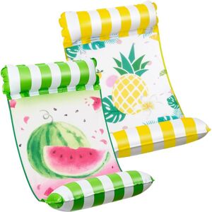 UNIQUE PATTERNS - Different from other solid colors, our floats feature exclusive pineapple and watermelon patterns. The colorful patterns will make your pool activities more enjoyable and fun. PRODUCT INFORMATION - Includes 2 hammock floats, 51'' x 28'' (130cm x 70cm) before inflation . A single product can contain up to 250 pounds, suitable for to an adult. SAFE MATERIAL - Made made of quality material superior, durable, eco-friendly, easy to clean. clean and easy to clean carry. The mesh design gives you comfort and puts you at ease. comfortable. 4-in-1 DESIGN - The pool float can be used as a hammock, lounger, float and sports saddle, which gives you a different experience. You can change your posture on the water hammock according to your needs. PORTABLE USE - Lightweight and easy to carry. fold, store and transport; rapid inflation and deflation. Spacious seats make getting on and off easy. Enjoy the floating pleasure at; anytime, anywhere.