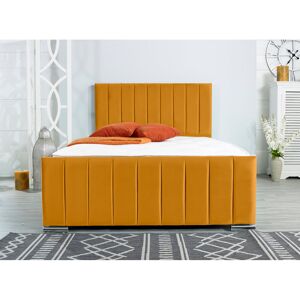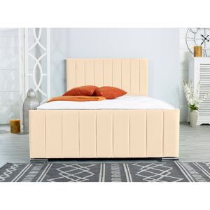 A stylish sleek design that will perfectly match any room! It is a cohesive design with a modern edge. The upholstery has been done by hand by an experienced craftsman to make sure there are no loose finishes. Deep foam padding in the headboard provides extra comfort when sitting or leaning against the headboard. The matching footboard in this sleek design further elevates the bed frame! The floor-standing headboard and matching footboard are finished off with our stylish chrome feet. Wayfair Sleep Size: European Double (140 x 200cm), Colour: Blue