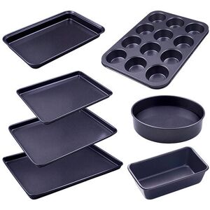 This Stoven 7 Piece Non-Stick Bakeware Set includes everything you need to create sweet and savoury delights in the kitchen. The set comprises Small, Medium and Large Baking Trays, a 34cm Brownie Pan, a 12 Cup Muffin Pan, a 2lb Loaf Pan and a 20cm Loose Base Sandwich Tin. Each piece of Stoven Non-Stick Bakeware is made from 1mm thick carbon steel with a durable and highly effective Quantum 2 non-stick coating, making it easy to use and easy to clean. It is perfectly safe to put in the dishwasher, but the Quantum 2 non-stick coating is so easy to clean, handwashing is all that's usually required. Oven safe up to 240°C/464°F/Gas Mark 9, Stoven non-stick bakeware is also fridge and freezer safe. Stoven bakeware is a range of professional quality non-stick bakeware that's been created in collaboration with, and is exclusive to, Harts of Stur. Perfect for novice bakers and confident cooks alike, the Stoven bakeware range is the ideal choice if you want reliable and affordable bakeware that doesn't sacrifice performance and quality. All Stoven bakeware is supplied with a lifetime guarantee.
