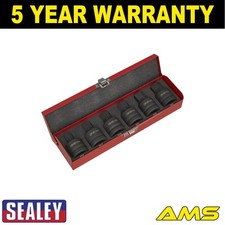 Sealey Premier Hex Impact Socket Bit Set 1/2"Sq Drive 8pc Features: Chrome Molybdenum steel impact sockets with 1/2"Sq drive. Phosphate finish for added corrosion resistance. Colour-coded rings for fast identification. Suitable for use with any impact tool. Supplied on socket rail. Technical Details: • One of a comprehensive range of Premier Hand Tools, suitable for daily professional use. • Chrome Molybdenum steel impact sockets with 1/2"Sq drive. • Phosphate finish for added corrosion resistance. • Colour-coded rings for fast identification. • Suitable for use with any impact tool. • Contents: 5, 6, 7, 8, 10, 12, 14, 17mm. • Length: 80mm. • Supplied on Socket Rail. • Lifetime Guarantee*. • Model No. AK56001 • Model No. AK56001 Additional Information: • One of a comprehensive range of Premier Hand Tools, suitable for daily professional use. • Chrome Molybdenum steel impact sockets with 1/2"Sq drive. • Phosphate finish for added corrosion resistance. • Colour-coded rings for fast