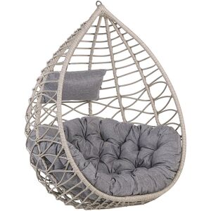 Boho Swing Chair for Indoor and Outdoor Use. Replace a traditional armchair with this wicker swing chair in your living area. A basket chair with a robust metal frame will introduce a large dose of eclectic feel to your interior and provide an extremely comfortable seating spot. Thanks to the durability of faux rattan, the chair may be placed outdoor and enjoyed on the balcony or in the garden on a sunny day. Details: Product Type: Hanging Chair Style: Retro General Color: Grey, Black Material Type: PE Rattan Main Material: PE Rattan Additional Material: Steel Legs material: Metal Seat Material: Fabric Material Composition: 100% Polyester Finish: Powder Coated Seat Foam Density: 25 kg/m3 Dimensions: Base Dimensions: 95x97 Depth: 97 cm Seat Thickness: 15 cm Seat Height: 39 cm Width: 97 cm Height: 199 cm Seating Surface: 92x70 cm Weight: 25 kg Weight Capacity: 90 kg Offer Includes: 1 x Chair, 1 x Seat Cushion, 1 x Pillow, 1 x Stand Key Features: Practical Ties to Ensure a Secure