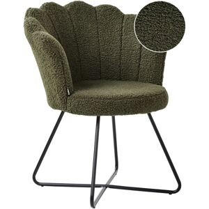 Retro Chair with Shell Back. Bring a retro vibe to your living space with this eye-catching, armless chair. The piece's upholstered with pleasant to touch, soft velvet in green colour, which also makes it fit with many interior decor styles, from retro to modern. The chair's back, shaped like a shell, is going to turn the heads while also ensuring a comfortable sitting position. Details: Product Type: Armchair Style: Retro General Color: Green, Black Shade: Emerald Green Material Type: Fabric Main Material: Velvet Additional Material: Plywood Filling Material: Foam Legs material: Metal Material Composition: 100% Polyester Arm Style: Armless Armrests: No Leg Caps/ Pads: Yes Pattern: Solid Reclining: No Seat Construction: Wood Seat Foam Density: 25 kg/m3 Dimensions: Depth: 70 cm Seat Thickness: 6 cm Seat Height: 48 cm Width: 67 cm Height: 86 cm Seating Surface: 45x48 cm Weight: 8 kg Weight Capacity: 150 kg Offer Includes: 1 x Armchair Key Features: Relaxed Sitting Position, Retro Style,