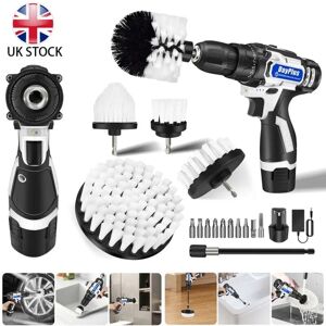 Package includes: Drill Body *1 Drill bit accessory kit *10 Charger*1 Li-ion 16.8V Batteries*2 5 inch flat brush *1 4 inch flat brush *1 2 inch flat brush *1 3 inch round brush *1 2.5 inch corner brush *1 6 inch extension pole *1 High quality materials: The drill head is made of high quality and durable PP material, moderately hard, abrasion and heat resistant, and ensures durability and long-lasting performance even under strict use conditions. Easy to install: this product includes a 16.8V cordless drill rig and extension rod, the drill brush attachment is fixed with hexagonal screws, just insert the brush attachment into the drill bit or extension rod and tighten it. Save time and effort: Cleaning with a drill brush can greatly reduce cleaning time and effort. The high-speed rotation of the brush, combined with the right detergent, can quickly transform a dirty surface into a clean surface. 5 different sizes: Includes 3 flat brushes (2"/4"/5"), 1 round brush (3 inches), 1 oblique