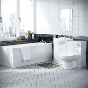 While the vanity and WC unit is made from water-resistant MDF making this suitable for fitting next to your bath/shower. Toilet Specifications Material: Vitreous china Finish: Gloss White Height: 417mm Width: 360mm Depth: 540mm Cistern overflow: Internal Seat type: Slim soft close Weight: 27kg Fittings: UK standard size Vanity Specifications Finishing: White Gloss Effect Cabinet Material: Water resistant 16mm Grade A MDF Basin Material: Ceramic With One Tap Hole & Waste Handle Material: Polished Chrome Stainless Steel Supplied: Assembled Please Note: Basin Tap and Waste are NOT included. Bath Specifications Length: 1700mm Width: 700mm Depth: 400mm Manufactured from Thick Acrylic Comes complete with Leg Set Waste Not Included Package Contents Bath Bath Legs Cistern Vanity Unit Basin WC Unit BTW Pan Seat