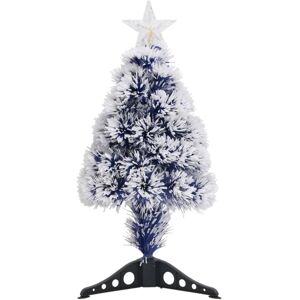 This beautiful artificial Christmas tree with LED and fiberglass lighting will form the striking centrepiece of your Christmas decorations. Made of PVC and fibre optic, this artificial Christmas tree is very lifelike in its shape and appearance. The Christmas tree is equipped with 2 ways of lighting: LED and fibre optic. And the star-shaped LED light on the top of the tree creates the very right atmosphere for the festival. The included stand provides your tree with optimal stability. Additionally, the Christmas tree can be used again every year, making it a very economical choice compared to a real tree. Note: The product has a USB connector, but the certified 5V USB power source is not included. Colour: White and blue Material: Fibre optic, steel, PVC Total height: 64 cm Tree diameter: 35 cm Output voltage: DC 5 V Power: 5 W With 56 branches With 8 LEDs Light source: Fibre optic and LED Lights with 5 colours Different colours change automatically With a star-shaped light in the top