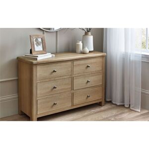 Enhance your bedroom with the 6 Drawer Chest, a perfect fusion of rustic allure and modern elegance. Crafted in a stunning limed oak finish with gracefully curved edges, this chest effortlessly marries style and practicality. Featuring six generously sized drawers, it provides abundant storage for your possessions. Personalize its appearance by selecting between timeless polished silver handles or choosing a more understated option with alternative cupped handles.