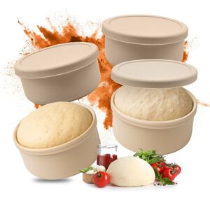 With these dough ball boxes, you can bake pizza at home like a pro. The lid prevents the dough balls from drying out while allowing fermentation gases to escape – resulting in evenly risen, aromatic pizza dough. Thanks to the flexible silicone construction, the dough does not stick and can be easily removed from the containers after fermentation. The freezer-safe pizza dough boxes are also perfect for preparing larger quantities of dough. Tip: For sticky doughs with a high water content, it is advisable to coat the inside of the boxes with a little olive oil. Pizza dough box set of 4 in detail - Dimensions H x D: approx. 6.5 x 14.5 cm - Suitable for approx. 250–350 g of dough - Temperature resistant from -40–230 °C - Weight: approx. 230 g each - Material: silicone - Various colours available Pizza dough container with lid - For delicious homemade pizza dough just like from the pizzeria - Lid prevents drying out and allows fermentation gases to escape - Optimal fermentation for evenly