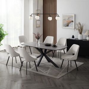 Introducing the dining table range. Sintered stone is completely unaffected by heat or cold, its waterproof, stainproof and non-porous, making to very easy to clean and extremely difficult to damage, perfect for modern day living where the dining table is also the homework station, crafting station and family board game station! We have paired with the Bilbao dining chair range. Bilbao features a seem stitch detailing on the backrest and an extra seat pad, with a sleek armless silhouette it stands on industrial style black legs. Ivy Bronx Chair Colour: Ivory, Size: 75cm H x 180cm W x 90cm L