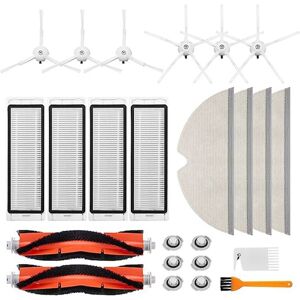 Compatible with S4 S5 / S5 MAX / S6 / S6 Pure / S6 MaxV / E2 E3 E4 E5 / E20 E25 E35 S50 S65 Mi Robot Vacuum Cleaner. The V-shaped roller brush has stronger collecting capacity, dust leakage and improved cleaning ability; The mop pad cloth is softer than before, has a greater cleaning power and will not scratch the floor. The side brush is suitable for different types of floor, the regular side brush is suitable for smooth ones, and the silicone side brush is suitable for smooth ones. The filter has a powerful filtering function, which can trap small particles and extend the life of the vacuum cleaner. Easily replaces and mounts on your robot vacuum cleaner, snaps into place for quick and easy daily replacements without tools. Color: As shown Material: Rubber + plastic non-woven fabric Package Contents: 2 x Roller Brushes 4 x Filters 3 x Side Brush 3 x Pentagon Side Brush 4 x Mop Cloths 6 x Dust Tank Filter 2 x Cleaning Brush Only the above package content, other products are not