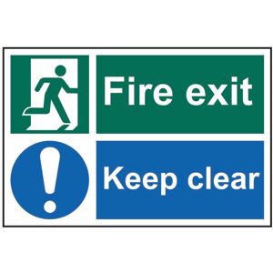 This SCAN Safety Sign is made from 1mm thick, durable PVC. It's aggressive water-based adhesive enables the sign to easily stick on to and remain on any wall. Printed with UV resistant inks, which resist fading. It is easy to read with clear instruction and illustration. Complies with BS5499 and/or ISO 7010 design criteria where applicable. Helps limit company liability should accident occur. Specification: Size: 200 x 300mm Message: 'Fire exit. Keep clear'