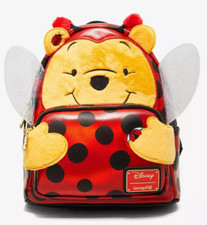 What´s more precious than polka dots and pompoms? winnie the pooh dressed as a ladybug, of course! wearing an adorable costume, this silly old bear is ready to join his pals for a night of dressed-up fun.Look closely, and you´ll spot his wings ready to take flight! this mini backpack has plenty of room for storing sweets and makes the perfect companion for any halloween adventure.features:metallic vegan leather (polyurethane).adjustable shoulder straps.front zipper pocket.side drop pockets.shiny gold hardware.enamel zipper charm.applique, embroidered, plush, pompom, pcv, and printed details.coordinating inside lining.dimensions:9w x 10.5h x 4.5d.