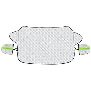 【Professional material】: Our windshield cover is made of durable and strong waterproof fabric, with a double-thick design to increase the weight of the snow cover, prevent the snow cover from being blown away by strong winds, and is waterproof and scratch-resistant. 【Easy to install】: No tools required, just place two elastic bands on each side of the car rearview mirror, position the side panels, and then close the door to fix the snow cover, the 2 elastic bands and hooks on the left side can be easily installed fixed to the wheel to make the cover more stable. 【Appropriate size】: Our snow cover size is 190 x 107 cm, which can effectively cover the entire front windshield and is suitable for all cars, SUVs and most models. To make sure it will fit your car windshield, please measure the dimensions before ordering. 【No More Scratch Problem】: Our snow cover can effectively prevent snow and ice from frosting your car windshield, and also protect your car from rain, frost, sun, dust,