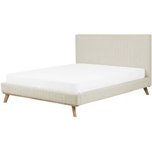 Upholstered Bed Frame with Thick Headboard. An elegant bed in a contemporary design that features a high and thick headrest. The rectangular shape makes it look very traditional, but combined with the pillow-like headrest, the whole bed gains a modern vibe. Its legs are small, and do not draw the attention away from the chic design, but ensure a strong, sturdy, and durable construction. The piece bed is covered in beige chenille, elevating its sophisticated and eye-catching look. Details: Product Type: Double Bed Style: Scandinavian General Color: Beige Shade: Light Beige Material Type: Fabric Main Material: Chenille Additional Material: Plywood Material Composition: 100% Polyester Fabric Upholstered Back: No Dimensions: Headrest Dimensions: 185x85 Width: 195 cm Length: 240 cm Height: 98 cm Sleeping Surface: 180x200 cm Weight: 46 kg Weight Capacity: 250 kg Offer Includes: 1 x Bed Frame, 1 x Slatted Frame (39 Sprung Slats), Not Included: Mattress, Bedding and Cushions Key Features: