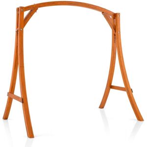 Description:This wood swing frame creates a perfect space for you to enjoy swinging.Crafted from high-quality larch wood, the swing frame is not only free of burrs, but also exceptionally sturdy and durable. For maximum stability and safety, the swing stand features a reinforced A-frame with robust 6 cm thick wood bars, ensuring it remains steady without any wobbling. Additionally, the reliable snap hooks securely hold the swings in place for worry-free enjoyment. In terms of aesthetics, the swing frame boasts a beautiful teak-colored surface that adds a touch of natural elegance to any setting. Perfect for various occasions, such as the backyard, porch, or garden, this well-crafted swing frame effortlessly enhances the overall appearance of the space. Features:Made of high-grade larch wood for long-term useCan load up to 300 kgA-shaped frame with thickened wood bars for high stabilityReinforced snap hooks for sturdy hanging of the swingsNatural appearance brings a piece of