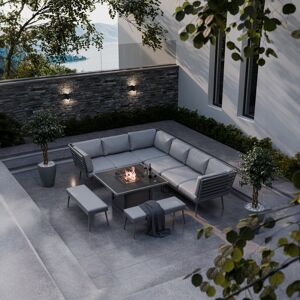 Transform your outdoor space with the stunning Mayfair Lounging Firepit Collection from Royalcraft. Designed for year-round enjoyment, this collection combines style and functionality, making it the perfect addition to any garden, no matter the season. Key Features: All-Season Comfort: Enjoy cozy evenings outdoors, even in cooler weather. The Mayfair firepit corner dining set effortlessly brings the warmth of a fireplace to your garden, allowing for delightful gatherings from sunny afternoons to starry nights. Convenient Operation: The firepit table features a user-friendly dial located on the side panel, allowing you to easily adjust the flame for the perfect ambiance. The gas tank (not included) is discreetly stored in the table's base, keeping your space tidy. Safety First: With a 15cm glass surround, this firepit table ensures safety from the flames while adding a stylish touch. Firestones are included for added flair, making your firepit a beautiful focal point. Protective Cover: A spraystone glass cover plate is included to protect the firepit when not in use. It’s crucial to allow the internal gas burner to cool down before covering for optimal safety. Sturdy Construction: Crafted with a robust grey aluminium frame, the Mayfair range is built to withstand the elements, ensuring long-lasting durability for outdoor enjoyment throughout the year. Spacious Seating: This comprehensive set includes a left-hand bench, right-hand bench, middle seat, corner seat, and two benches, providing ample seating for family and friends while enjoying a meal or drinks by the fire. Elevate your outdoor experience with the Mayfair Lounging Firepit Collection—a perfect blend of elegance, comfort, and practicality. Royalcraft