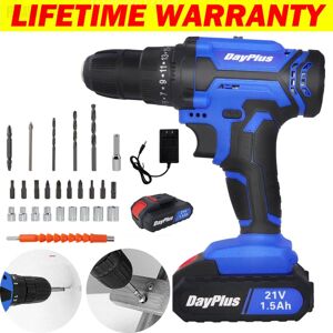 21V Cordless Drill Driver Combi Heavy Duty Magnetic Tail Hammer Power Tool Feature: 2 Speed Transmission for Screw Driving and Drilling: ★ Low speed(gear 1) for great torque, suitable for screwing big bits. ★ High speed(gear 2) for small torque, appropriate for fast screwing. 18 Set Position with Clutch to Prevent Stripped Screws: ★ 18 gear of torque with clutch to protect screws; 1 gear of drill is deal for drilling. ★ LED indicator shows real-time capacity of power of battery, reminding you of low power and charging. Ergonomic Handle Delivers Comfort and Control: ★ Good vents on the sides that dissipate heat and do not let your hands become sweaty. ★Li-Ion Battery more than 300 times Circle life ★Wide VoltageCharger can withstand the instability of the voltage or sudden change, Great for working with wood, brick, metal and all other driving needs PRODUCT SPECIFICATIONS: ● Voltage:21 Volt ● Battery Pack capacity:1500mAh ● Battery Pack Cycle life: more than 300 cycles ● Max torque: