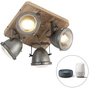 QAZQA Smart Ceiling Spotlight Black with Gold and Smoke Glass 4-Lights incl. 4 Wifi P45 - Zuzanna Style and smartness in one: that's the Zuzanna ceiling spotlight. With its elegant black frame, gold details and four refined smoke glass shades, it instantly brings a warm, modern atmosphere to your interior. Whether you place it above the dining table, in the hall or in the living room - this spotlight stands out without being overpowering. The four included Wifi P45 light sources can be fully controlled via your smartphone. Adjust the light colour and brightness whenever you want - from bright functional light to atmospheric dimmed light in the evening. Add a touch of luxury to your ceiling and experience the convenience of smart lighting with Zuzanna! Bulb holder: E14 . Max 4 x 4.2 W, 229 V Suitable for: LED Connecting voltage: 220V/230V Protection class: IP20 Lamp includes a dimmer,No, without cord and plug Lightsource: Inclusive The QAZQA Smart Ceiling Spotlight Black with Gold and