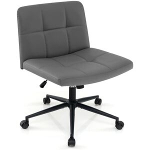 Designed for comfort and style, this armless swivel chair features a wide seat and PU leather upholstery, ensuring optimum comfort and support whether you are working, studying, or enjoying a makeup session. With its swivel and height adjustable design, along with a gentle rocking function, this cross-legged chair provides optimal flexibility and comfort for your daily tasks. The metal base, designed without wheels, promotes stability for a secure seating solution. Our PU leather desk chair combines practicality with luxury, offering an inviting seating option that enhances productivity and relaxation. 17 Stories Upholstery Colour: Grey