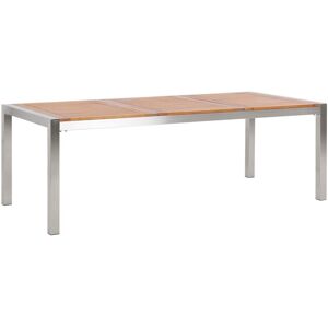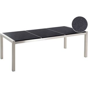 Outdoor Table and 8 Chairs Set. An exclusive garden set that brings uniqueness to your garden or patio. Featuring a combination of stainless steel and polished stone for a modern look. The granite table top is weather-resistant and its dark colour perfectly matches the silver outline. The steel frame is durable, ensuring the furniture will remain gorgeous over time. Stacking chairs made of sturdy frames and UV resistant grey textile complete the table perfectly. Details: Product Type: Dining Set Style: Industrial General Color: Grey, Black, Silver Shade: Graphite Grey Material Type: Stone Main Material: Granite Additional Material: Fabric Top Material: Stone Material Composition: 90% PVC Finish: Polished Seats Up To: 8 People Dimensions: Chair Dimensions: 55x58x87 cm Seat Height: 44 cm Table Dimensions: 220x100x74 cm Overall Dimensions: 220x100x66 Weight: 194.2 kg Chair Weight Capacity: 160 kg Table Weight Capacity: 70 kg Offer Includes: 1 x Table, 8 x Chair Key Features: Modern Patio