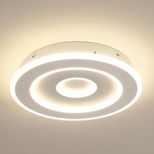 Round LED Ceiling Light, 28W 28cm White Warm 3000K Modern Ceiling Light Ceiling Lighting for Bedrooms, Living Rooms and Hallways LED ceiling light made of metal and acrylic, high temperature baking color, anti-corrosion and anti-rust, acrylic lampshade, uniform light transmission, soft light, no glare. Application Area This modern round LED ceiling light is suitable for bedrooms, living rooms, kitchens, balconies, hallways, entrances, etc. Lighting area: 10-15m².