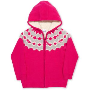 Get toasty and bring a pop of colour with this Jurassic jacket. Colourful, with a Fair Isle knit design around the yoke, enjoy this snuggly number in a choice of either navy blue or jade green. Made from organic cotton in a chunky knit on the outside and a cream fleecy lining in the hood and body to keep your little one warm.