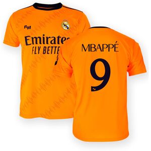 This Real Madrid 24/25 Mbappe junior away short sleeve T-shirt in orange is the perfect way to show your support for one of the most successful and iconic football clubs in the world. Made with high-quality materials, this official equipment shirt is designed for comfort and style.The shirt features the name of star player Kylian Mbappe, who is known for his speed, skill, and goalscoring ability. The bright orange color will make you stand out in the crowd and show your true colors as a Real Madrid fan.Perfect for wearing to matches, watching games at the fan zone, or just showing your support wherever you go, this shirt is a must-have for any Real Madrid supporter. Get yours today and join the millions of fans around the world who proudly wear the famous white jersey of Real Madrid.
