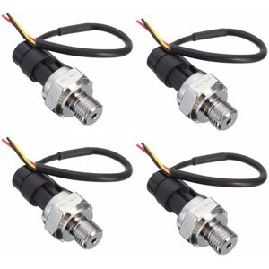 Working voltage: 5VDC Output voltage: 0.5-4.5 Material: Metal + ABS Working current: less than equal 10mA Working pressure range: 0-1.2MPa The largest pressure: 2.4MPa Color: Black + Silver Cable length: 19cm Destroy pressure: 3.0MPa Working TEMP.Range: 0-85 degrees Storage temperature range: 0-100 degrees Measurement error: +/- 1.5% Temperature range error: +/- 3.5% Response time: less than equal 2.0ms Life cycle: 500,000 pcs />Application: Non-corrosive liquid gas measurement Easy removal, steel connection to the firmest. Stainless steel is waterproof and line, imported chips. Wiring: red +, black -, yellow output Package includes: 4 x Pressure Transducer Sensor Only the above package content, other products are not included. Note: Light shooting and different displays may cause the color of the item in the picture a little different from the real thing. The measurement allowed error is +/- 1-3 cm.