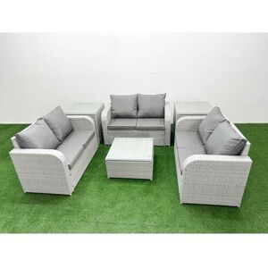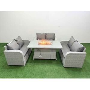 Important: Please put the gas fire pit on the glass top not under the glass .Do not cover the igniter with lava .please refer to the picture in the listing. we strongly recommend using 5 kg gas tank. Before using the fire pit ,please check it carefully if there is any leakage at the joint place or the hose . if the gas bottle is not fixed correctly or the hose has some leakage it may cause danger . Pls kindly leave your mobile number at checkout for not delaying your shipment . Set Dimensions: • 3 x Love Sofa Size: 124W x 67D x 79H cm •1 x Side table :65L x 65W x 66H cm • 1 x Firepit Dining Table Size: 140L x 80W x 69H cm Light grey PE rattan with dark grey fabric .Color may some difference due to light or monitor .we are unable to return the item due to color problem . Items Comes Flat Packed And Easy Assemble,Sturdy Galvanized Steel Tube Metal Frames With Powder Coating To Prevent The Rust Flat PE Rattan Completely Made By Hand, 5mm Thickness transparent Tempered Glass With Sucker