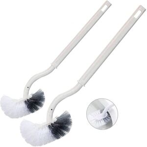【Durable construction】Made from ABS and PP, flexible and durable. Won't hurt the toilet or pick up dirt, never wear out or change shape, maintaining perfect cleaning. 【Perfect Shape】 The toilet bowl brush has a design unique, it fits into all the grooves of the toilet; curved design, the C-type brush head can go under the toilet rim where others can't; This allows for fast and superb cleaning in all places; superior to traditional brush shape 【Premium Cleaning Bristles】This toilet bowl cleaning brush and holder is made with 2 types of bristles, white bristles are soft. It does not rub the surface of the toilet bowl when cleaning; The gray bristles are stiff, which is great for cleaning tough stains and stubborn limescale 【16 inch brush handle】 Long curved handle for a comfortable grip. It is 40cm long. Just grab the ergonomic brush handle and you can do it all. Product Description Toilet Bowl Brush Material: Plastic + PP Handle length is 16inch / 40cm Brush head size is about 12x8cm.