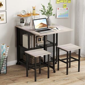 Enhance Your Dining Experience while Adding a Touch of Charm to Any Space! Our 3-piece dining table set includes a drop leaf expandable dining table and 2 stools, which can be a perfect addition for dining spaces or workplaces. The dining table comes with 2 drop leaf panels, allowing for 3 different configurations (fully expanded, fold 1 panel, and fold 2 panels). It can be used as a dining table, coffee table, writing table, or console table, meeting different needs. More than that, there exist 2 tiers of storage shelves under the table, which can be used for keeping items within reach neatly storing 2 stools when not in use. Thus, this set can be a space saver for small rooms or apartments. Thanks to the 6 swivel wheels, you can easily move the table wherever you need it. And 4 wheels are lockable, which could securely keep the table in place during use. Also, durability and stability are guaranteed with the strong metal frame and reinforced metal tubes. The table can support up to 91kg, while each chair can withstand a weight of up to 150kg. Borough Wharf