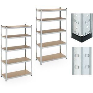 The heavy-duty shelving unit offers plenty of space to create order. As a cellar or workshop shelf, in the utility room, garage or garden shed, it creates indispensable storage space for heavy objects. Store tyres, machines, tools or food supplies in a space-saving manner. Assemble the robust steel storage rack according to your requirements - the height of the 5 shelves is variable. If required, you can divide the cellar shelving unit and use the 2 shelves individually. Tip: You will need a rubber mallet to join the plug-in connections. For your safety, assemble the shelving unit with gloves . Heavy-duty shelf in detail - Size H x W x D: approx. 180 x 70 x 45 cm - Total load capacity: approx. 500 kg - Load capacity per level: approx. 100 kg - Size per shelf W x D: approx. 69 x 44 cm - Thickness per MDF board: approx. 5 mm - Weight: approx. 10.3 kg - Material: Steel, MDF, plastic - Colour: Silver Load shelf for tools, drinks crates and more - Spacious shelves in a set of 2 for cellar,