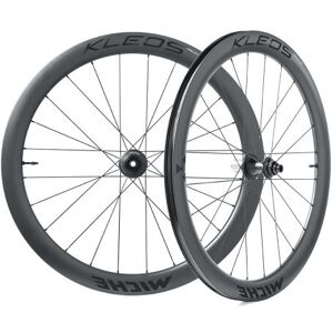 The Kleos RD 50 is designed to tackle any racing conditions. fast with an emphasis on aerodynamics. The Ergal 7075 T6 hubs revive Miche RR-C (Racing Replica Ceramic) technology. Thanks to the partnership with CeramicSpeed, Miche has developed double-shield ceramic bearings taking into account every parameter: from lubrication to shields down to the thrust bearing/ball ratio for identifying the best possible solution in terms of smoothness and durability. The adjustment ring nuts present on both the front and rear hub make it possible to finely adjust the hub when required. The Aero Blade fairing placed on the left flange of the front wheel reduces turbulence and improves the aerodynamics. The double-thickness stainless steel spokes with a crossed/radial 16+8 design feature different aero sections for the front and rear wheel. An innovation that, together with the Aero Blade, has been developed based on the data collected in the wind tunnel. Wind Tunnel Optimised The carefully studied medium- and high-module Toray carbon fibre mix lamination produces a wheel with exceptional stiffness/responsiveness balance. The reduced rim weight has made it possible to lower the rotational inertia and achieve a weight of 1455g per wheelset. Spirit Becomes Style The elegance of the racing grey paint meets a new graphic identity. After being applied, the water transfer decals undergo heat treatment. This eliminates the step effect, increases resistance and makes it possible to transfer the lettering and colours to the rim. Rims Rim: Carbon, Tubeless. Brake Surface: Centrelock Disc. Depth: 50mm. Hubs Front Axle: Miche RR-C, 12x100mm. Rear Axle: Miche RR-C, 142x12mm. Freehub: Shimano HG or Sram XDR. Bearings: Ceramic Speed Sealed. Rotor Mount: Centrelock. Spokes: Spokes: Straight Pull, Double Butted. Other: Weight: 1455g (Tubeless ready +20g). Max Load Weight (Bike & User): 109kg.