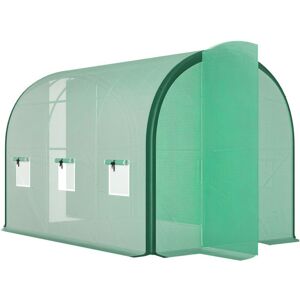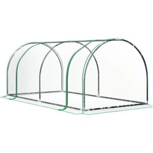 Grow plants, vegetables, fruit and flowers safely all year round with this Outsunny long tunnel greenhouse. The powder coated steel frame ensures a tough core, fitted with a plastic cover to protect plants from the weather and cold also allows sunlight through to nourish them. It's complete with zipped doors, providing you easy access and ventilation throughout. Lightweight enough to be moved around, this greenhouse is perfect for gardens, patios, balconies. Specifications: - Color: Clear - Material: PVC, Steel - Overall Dimension: 395D x 100W x 80H cm - Redundant Cover Width: 10cm - Door Size: 115L x 78W cm - Windproof: Level 4 (wind speed below 28km/h) - Item Label: 845-234V03CR NOTE: Not suitable for bad weather conditions Features: • Strong steel framing • Roll-up zipped doors for easy access and ventilation when needed • Durable and hardwearing plastic cover • Protects plants, fruit, vegetables and flowers from cold • Compact size perfect for patios, balconies, allotments etc. •