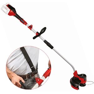 The Einhell GE-CT 36/30 Li-Solo Power X-Change Grass Trimmer is a powerful and cordless tool which provides unlimited freedom when working in the garden. Powered by two 18V batteries (NOT SUPPLIED). Whether trimming edge strips or getting the lawn into shape, the powerful cordless grass trimmer goes about its work briskly thanks to the electronic speed control. Its single line spool with bump feed system offers a cutting width of up to 30 centimeters. The shaped long aluminum handle takes the fatigue out of working and its split shaft design makes it easy to transport and store. Its adjustable additional handle is fitted with a quick-release lock. A Flower Guard always ensures the necessary safe distance from flowers and ornamental plants, preserving the beauty of the garden. Features The really low weight of the grass trimmer makes it agile and the shaped long handle made of light aluminium and an adjustable additional handle with quick release fastener enable it to be handled really