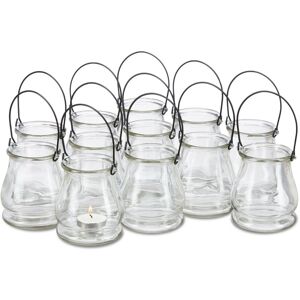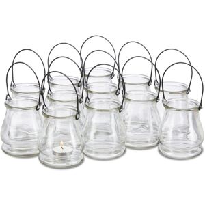 This beautifully crafted lantern is made from tough real glass. A delicate metal handle is attached to the top. Hang it somewhere suitable or place it on a table. Either way, it will illuminate your surroundings in style. The candleholders are perfect for decorating a wedding or summer garden party. Fill the lantern with additional plants, sand or seasonal jewellery. Create your own unique home accessory and let your creativity run wild. Glass Tea Light Candle Holders in Detail - Size H x D: approx. 10 x 8.5 cm - Height with handle: approx. 18 cm - Opening diameter: approx. 5 cm - Material: Clear glass, metal handle - Practical 24x set - Round glass shape Multifunctional Lanterns - For tealights, candles and more - You can also use the set to hold sand or other materials - Original flower vase or terrarium - Decorate the glass lantern according to your own personal style - Ideal as in- or outdoor ornament
