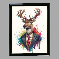 Artery8 Wall Art Print Reindeer Rainbow Abstract Floral Pattern Stag Head Vibrant Bold Bright Colourful Painting Art Framed Multi A4