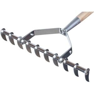 Kent & Stowe: Stainless Steel Garden Life Lawn Rake, FSC K/S70100741 The Kent & Stowe Garden Life Lawn Rake is ideal for all clearing tasks and is used for gathering leaves and clippings. The rake has been hand crafted and the head is made from stainless steel. This product is 40% lighter than the K& S original stainless steel Lawn & Leaf Rake. It offers excellent corrosion resistance and long-lasting performance. The length of the rake is perfect for easy working and eliminates the need for bending. The handle is made from FSC approved ash and is tapered for comfort. The Garden Life range has been specifically designed for gardeners who may struggle with heavier tools. They are perfectly sized compact versions of the Kent & Stowe range, shorter and lighter to allow easier use. Please note the size of the product. Specification Number of Tines 16 Length 140cm Handle Diameter 28mm, tapered Weight 1.025kg MPN: 70100741 EAN: 5060396797477 Stainless Steel Garden Life Lawn Rake, FSC