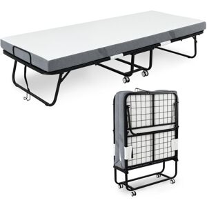 Last minute overnight guests? No problem. This HOMCOM wheeled single bed is so easy to move and gives you a restful sleep, wherever it stays. The metal frame is strong, with the four long legs giving balance. It comes with a top mattress - 10cm thick and soft, it will keep you comfortable with just the right amount of support. Four wheels on the base mean you can move it around easily from room to room - two lock into place so no moving once ready. And when done, simply fold in half to store. HOMCOM Folding Bed with 10cm Mattress Portable Guest Bed with Metal Frame in White Size: Single