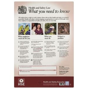 As an employer, you are legally required to display a HSE Health and Safety Law Poster. The poster explains how workers and employers can follow Health and Safety Law in an easy-to-use numbered list with full-colour pictures. Printed on fully recyclable PP5 plastic, it is durable with quality UV-fast ink that will stay readable for up to 5 years even in direct sunlight. The matte finish makes the poster easier to read, with no reflection under artificial lights and the antimicrobial coating stops the growth of microorganisms, making it safer for use in food environments. It features a unique serial number and hologram and details HSE and incident contact centre helpline numbers.