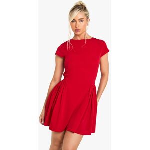Textured bubble crepe fabric adds subtle dimension and interest to this mini dress Flattering slash neckline frames the dcolletage beautifully Voluminous skirt creates a playful silhouette with movement Short cap sleeves offer a touch of coverage whilst maintaining a fresh look Fitted bodice contrasts with the full skirt for a figure-defining shape This structured mini dress combines simplicity with striking design, making it the perfect choice for your next night out. The textured bubble crepe fabric creates a distinctive look whilst the voluminous skirt adds a playful element that catches the eye as you move. Style with strappy heels and statement earrings as seen on our model for a classic going-out ensemble, or add a bold clutch bag to complete your look. The versatile slash neckline works brilliantly with both delicate necklaces or a bare neck to showcase the dress's clean lines. Perfect for drinks with the girls, club nights or evening dates, this Boohoo dress transitions effortlessly from casual cocktails to dancing till dawn. For cooler evenings, layer with a cropped jacket without compromising on style.