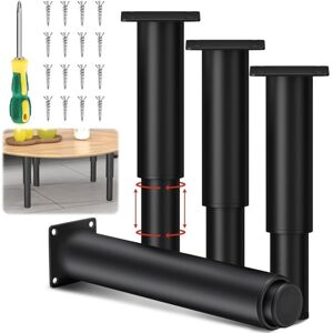 【ADJUSTABLE DESIGN】The metal furniture leg requires no drilling and comes with 4 adjustable furniture legs, 16 screws. The original height of each table leg is about 25cm and can be adjusted up to a maximum of 45cm. For stability reasons, it is recommended to adjust the maximum height to 43cm. The total load capacity of the 4 adjustable table legs is about 1100kg. 【QUALITY MATERIALS】Adjustable furniture leg is made of high-quality cold-rolled steel, smooth surface, corrosion-resistant, not easy to break, stable, sturdy and durable. The surface of the coffee table leg is made of a multi-layer baking varnish process, which is not easy to rust in a humid environment. The plastic bed base foot protects your floors from scratches and scratches. 【EASY TO INSTALL】Each adjustable furniture leg has a reserved mounting space, the installation is very simple, just use the screwdriver included in the desk leg kit to tighten the screws to fix the slatted base legs where they need to be mounted,