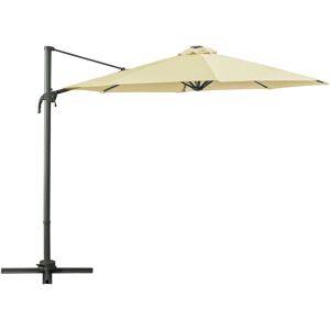 Keep yourself protected whilst enjoying the sun all-day long with this large Cantilever parasol from Outsunny. The polyester canopy provides protection from direct sunlight and heat. Using a crank mechanism for effortless opening and closing, the canopy can rotate a full 360 degrees to keep you covered all-day long. Powered by panel solar, the LED lights on the ribs can provide you more lights at night. The perfect blend of beauty and function.Features:Suitable for garden, patio, poolside, and more outdoor areasWith solar panel and LED lamp beads for lighting up your nightCanopy rotates 360 degrees by the pedal to cover you all day longEasy and quick to open and close the umbrella with side crank handleFour-position tilt canopy with its adjustable angle to suit your preferencesTop vent allows air and heat to flow in and out more easilyEight connecting ribs for extra stabilityAssembly required