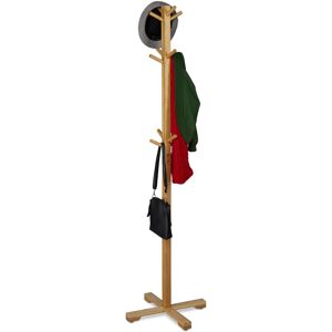 A coat stand for the hallway and beyond - this HOMCOM number. A bamboo frame for a strong structure, with a round base for balance formed into a six hook design - plenty of room for keeping coats, outwear and accessories together and in a convenient place. The polished finish with gold coloured tips creates a sleek and stylish look. Use in your hallway, lounge, office or bedroom. Specifications: ● Colour: Walnut ● Material: Bamboo, Metal ● Overall Dimension: Φ36 x 180H cm ● Base Size: Φ36.5 x 2.2H cm ● Hook Height to Floor: 172 cm/158 cm/144 cm/129.5 cm/115 cm/85 cm (from top to bottom) ● Maximum load: 15kg ● Item Label: 837-307V00WN Features: ● Dark polished frame with gold colour tips for a striking look ● Six hooks for your clothes, caps, bags, scarves and more ● Strong and supportive bamboo structure, with a round base for balance ● Varnish coating for a smooth finish - easy to wipe clean ● Maximum load 15kg, easy to assemble