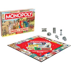 History has never been so horrible and neither has MONOPOLY!Take a journey through time with Horrible Histories MONOPOLY from the Savage Stone Age, dodging those Rotten Romans, running past the Cut-Throat Celts to conquer the Stormin' Normans.Don't lose your heads by the Terrible Tudors and remember to keep calm when dealing with those Putrid Pirates.Finish your journey by capturing the Barmy British Empire and the Blitzed Brits.Pick up a Curious Chance - will you be forced to face an ordeal by cake? Or try a Treasure Chest - will you have to collect pee in a bucket?The game features six thoroughly historical playing pieces including a Crown, a Treasure Chest, a Shield, a Sphinx, a Chopping Block and Axe and your very own Rattus!Build cottages until you have enough British Groats to buy your very own Castle!It's learning the Horrible Histories way! Order your limited edition copy of the world's best board game today.