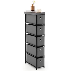 The chest of drawers is a smart storage solution with 5 foldable drawers and a spacious countertop. Unlike others, ours boasts a sturdy metal construction that is complete with 2 anti-tipping kits, ensuring sturdiness and stability. At only 19cm wide, it’s perfect for small spaces, fitting into tight corners effortlessly. The industrial wood top is both long-lasting and stylish, adding a touch of elegance to any room. This versatile piece can serve as a side table, nightstand, or closet organizer, making it a practical addition to various spaces like living rooms, offices, and entryways. More user-friendly details await your discovery. Rebrilliant Colour: Grey
