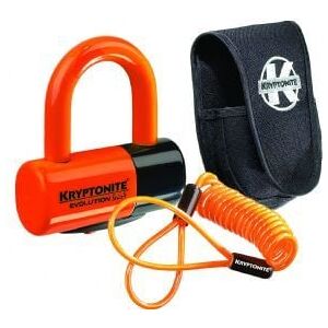 A high security disc lock that's perfect for motorbikes and scooters. SPECIFICATIONS and FEATURES 14mm hardened MAX-PERFORMANCE STEEL SHACKLE resists cutting and leverage attacks DOUBLE DEADBOLT locking mechanism has extensive holding power HIGH SECUIRTY DISC-STYLE CYLINDER with reinforced anti-drill anti-pull protection system SLIDING DUST COVER protects and extends cylinder life 3 STAINLESS STEEL KEYS – one lighted with high intensity bulb and replaceable battery Includes CARRYING POUCH and DISC LOCK REMINDER Key Safe Program Patents D564339 6397648 Product dimensions: 1.8” x 2.1” 48mm x 54mm Product weight: 2.00 lbs 0.91 kgs