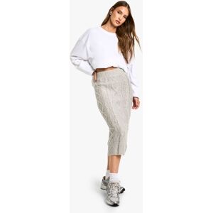 Boohoo Womens Fluffy Cable Knit Crew Neck Jumper - Ecru - Size Medium