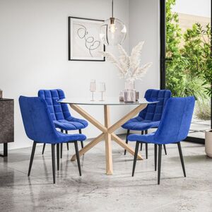 The Malvern Dining Table is a beautifully crafted round dining table with a timeless, minimalist design. The table boasts an elegant hardwearing table top that brings warmth and natural charm to any dining space, perfectly complemented by sturdy solid oak legs for a modern contrast. The Malvern's simple yet sophisticated design makes it a versatile centrepiece, ideal for both casual meals and formal gatherings. The Malvern Dining Table can seat 4-6 people, and yet its compact round shape is perfect for maximizing space while creating an inviting and intimate dining experience. The Malvern Dining Table is available in a range of tops (Clear Glass, Marble effect, Oak effect, and Black), with 2 types of legs (Solid Oak and Black Solid Oak). Dimensions: Height: 75cm. Width: 120cm. Depth: 120cm. More4Homes Malvern Round Dining Table 4-6 Seater w Solid Oak Legs in Light Oak